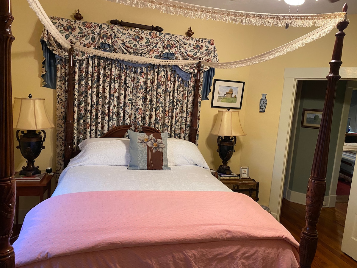 Very charming space. High Four poster bed and great area rug. Coffee pot too!