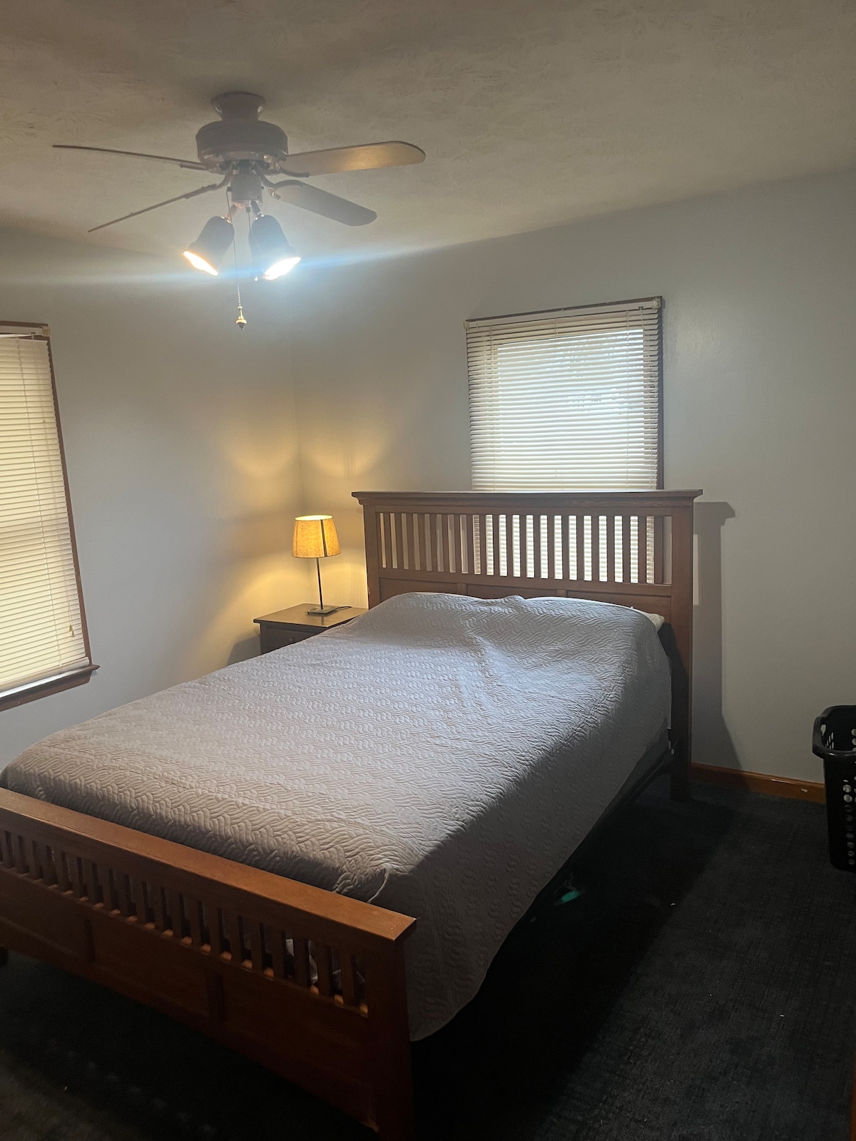 Welcome to our inviting Airbnb retreat! This spacious room boasts a comfortable queen bed. Driveway parking, big yard, flat screen TVs. Ideal for working professionals, the home is shared with two 24-year-old guys who work 7am-4pm schedules. 50% off for monthly stays. 25% off weekly stays.