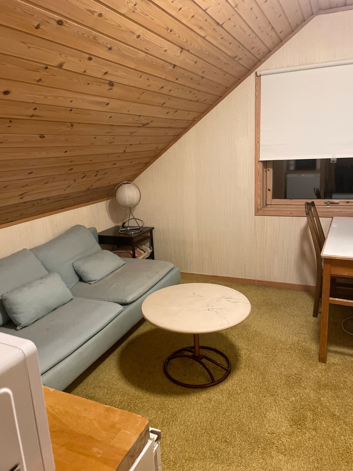 Private room with super comfortable high quality bed, workspace and cosy recreational corner. Mini kichen with your private fridge, microwave kettle, kitchen equipment and dining area. Bathroom floor heating. Washing machine and dryer.