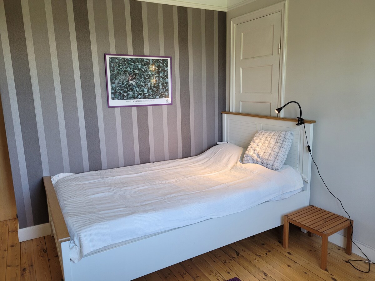 A room for two or a very quiet and nice area close to Stockholm city. The house is built in 1925 and has a lot of the atmosphere left over from that time. The room is on the third floor overlooking part of the garden and surroundings.