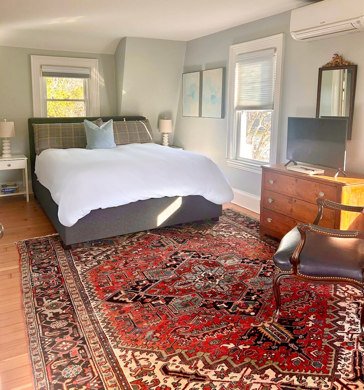 Inside, you’ll find a welcoming space filled with natural light & original hardwood floors. Start your day with a coffee in one of the sunlit nooks, or unwind in the evenings by the 4k TV or record player. Whether your stay is short or long, every detail has been thoughtfully considered.