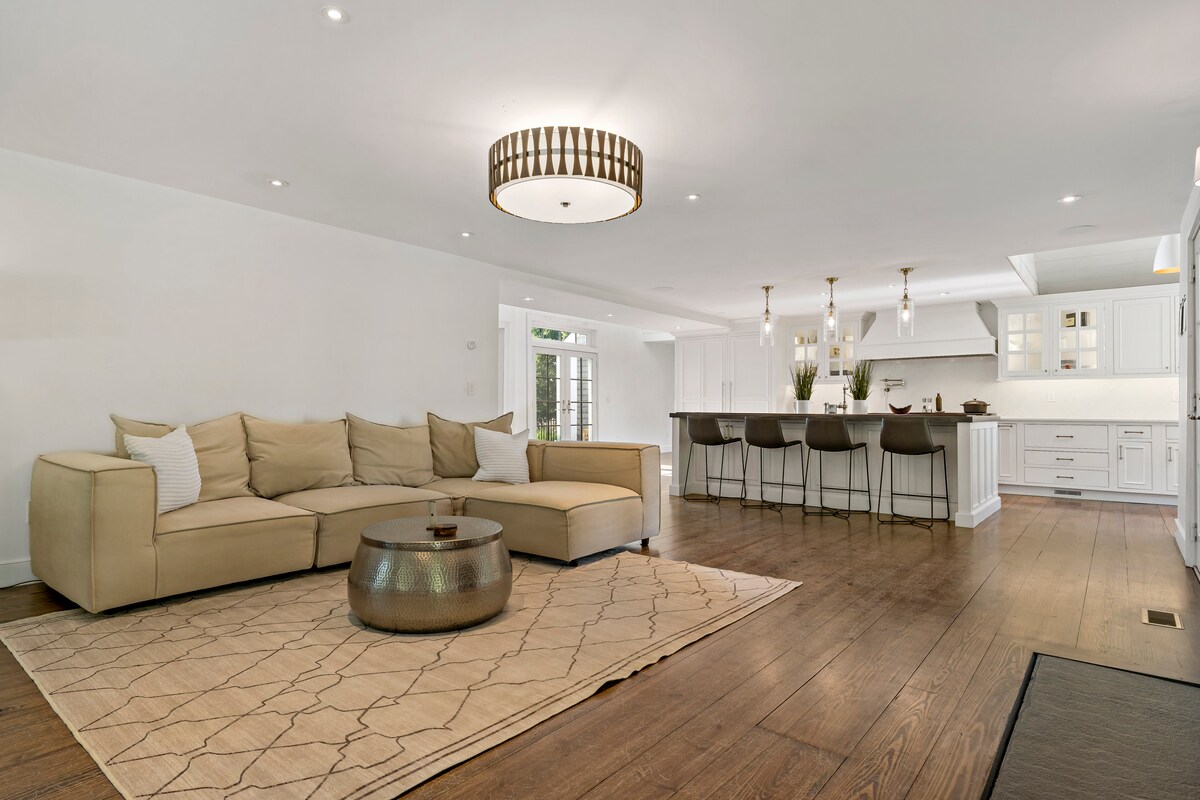 Large sofa with 72 inch TV. Board games and pet toys provided. Plenty of natural sunlight throughout the day.