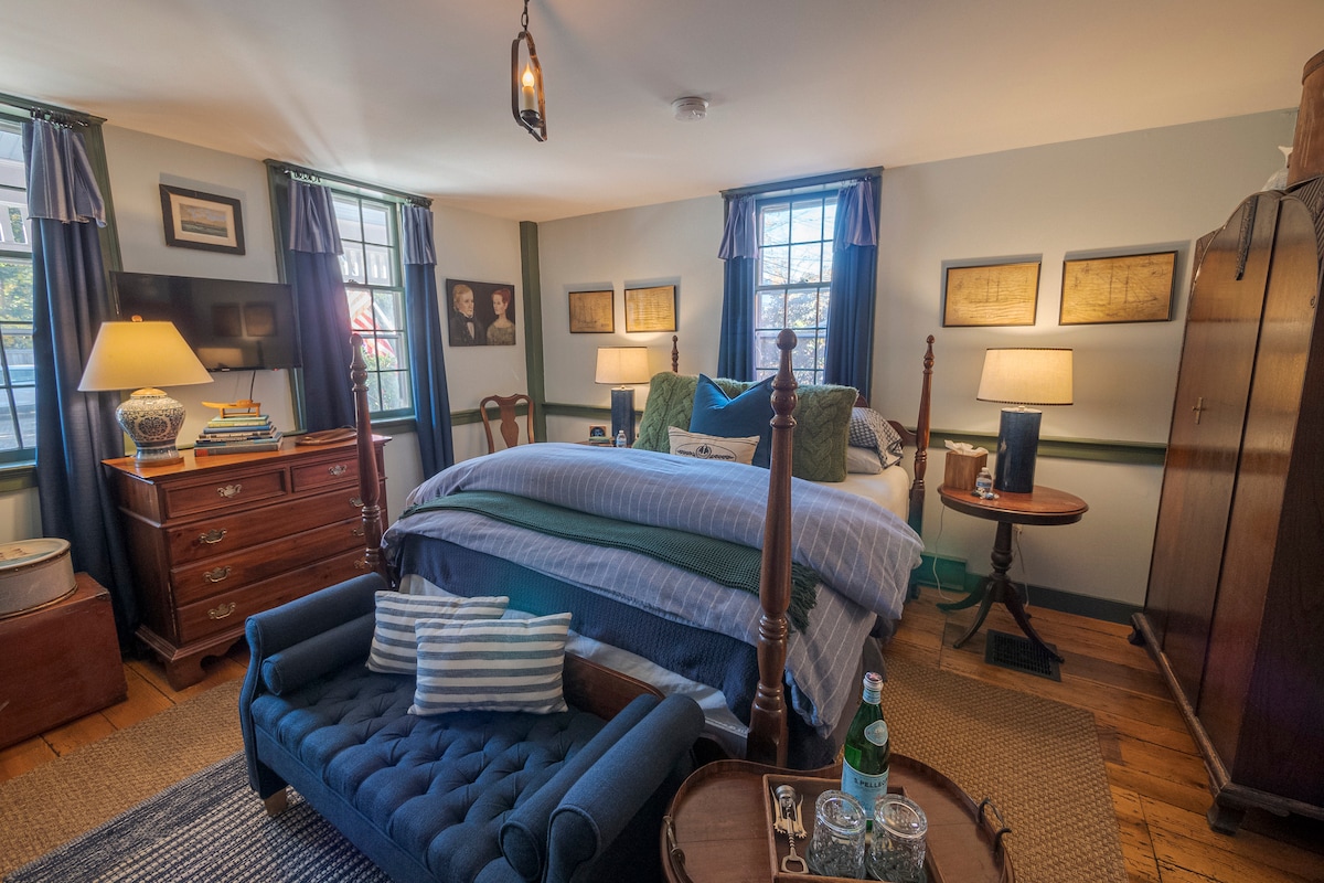 The Cordage Suite is a super charming retreat! With a dreamy queen bed~ you’ll find it so comfy you won’t want to leave! A twin-day bed, ensuite bath, and a private entrance provide additional separation and privacy. You’ll experience something special when you stay at the 1807 Williams Home property~ enjoy Mystic Seaport's history right in your room! Relax by the fire pit under the stars! Walk or bike on the scenic River Rd around the corner! Let us treat you to pure, homegrown hospitality!