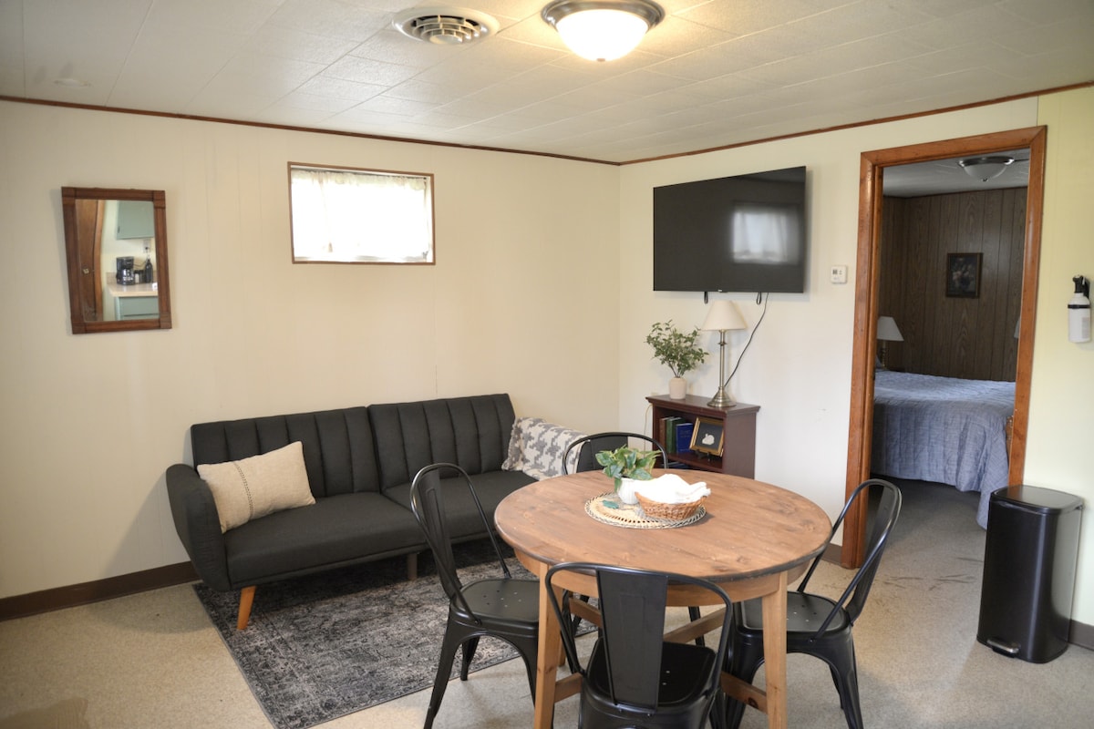 You'll have complete privacy and access to your cabin. Enter with a smart lock code & your in! The kitchen, dining and living room are all one with two bedrooms and a bathroom with a tub/shower. We have over 35 acres to explore and enjoy as well as a pond for fishing and/or swimming. You can also enjoy the creek that runs through the property. We even have a covered bridge! Your cabin has two bedrooms with a double bed in each, and one twin. Complete with cooking essentials & a kitchenette, a dining room, wifi & a Smart TV, our 450 square foot cabin is sure to provide you with rest and relaxation! From the pond to the creek, you'll enjoy the outdoors in the heart of Lancaster county's farmland.