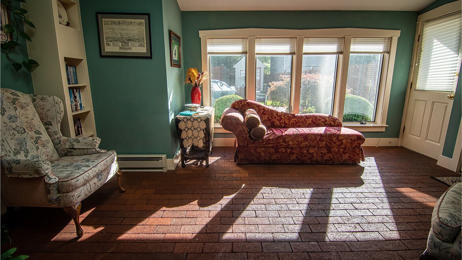 The Shaker Suite is a rustic space with exposed, original wood timbers and finished wood walls. Includes a comfortable queen bed and tiled shower and bathroom.