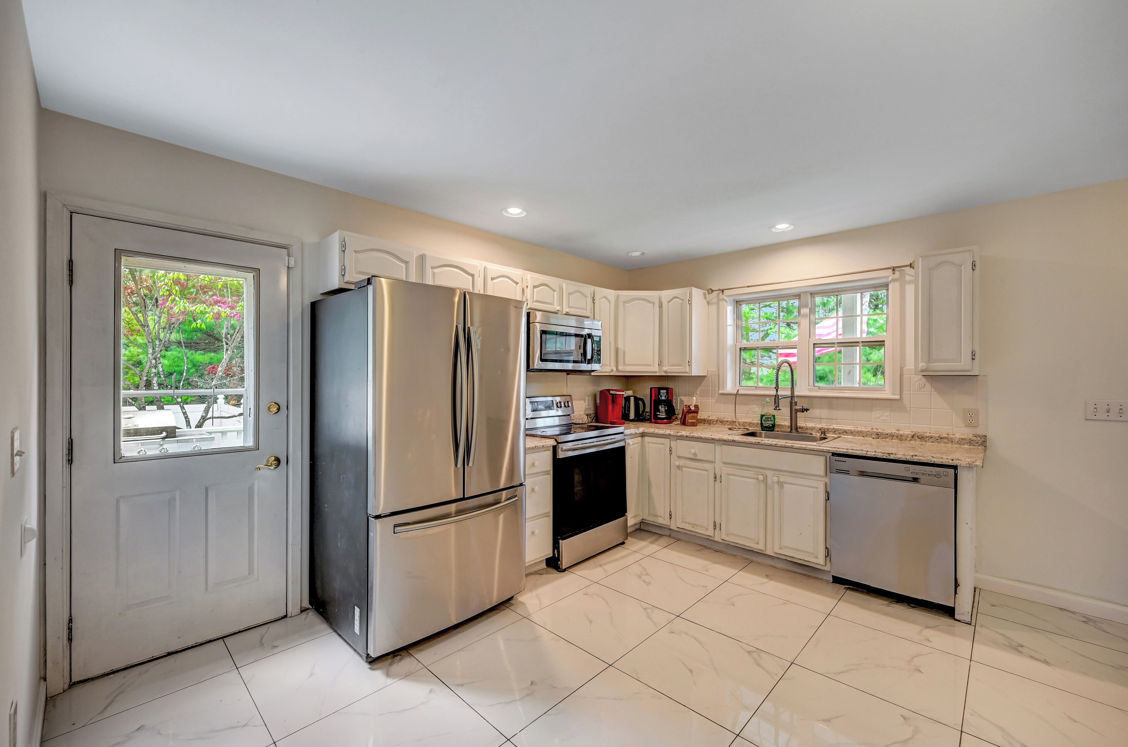 Exiting through the kitchen's back door, you'll find a parking pad with space for up to four cars.
