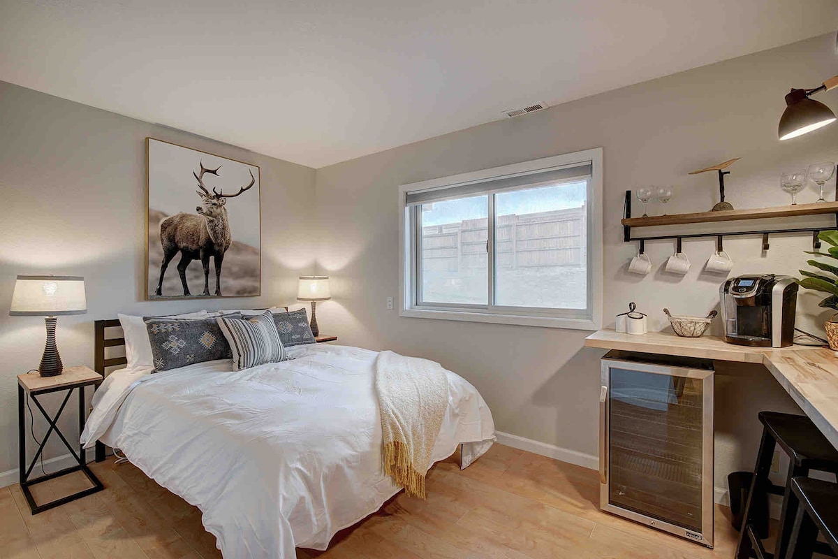 Welcome to my Breck condo! Guests will have access to 1 bedroom on the top floor with a king bed and an ottoman that pulls out to a kid twin bed. The full bathroom is on that same top floor. The middle floor has a living room, shared kitchen, half shared bath and large deck with great views of Breckenridge resort. The kitchen is shared by you and my caretaker.