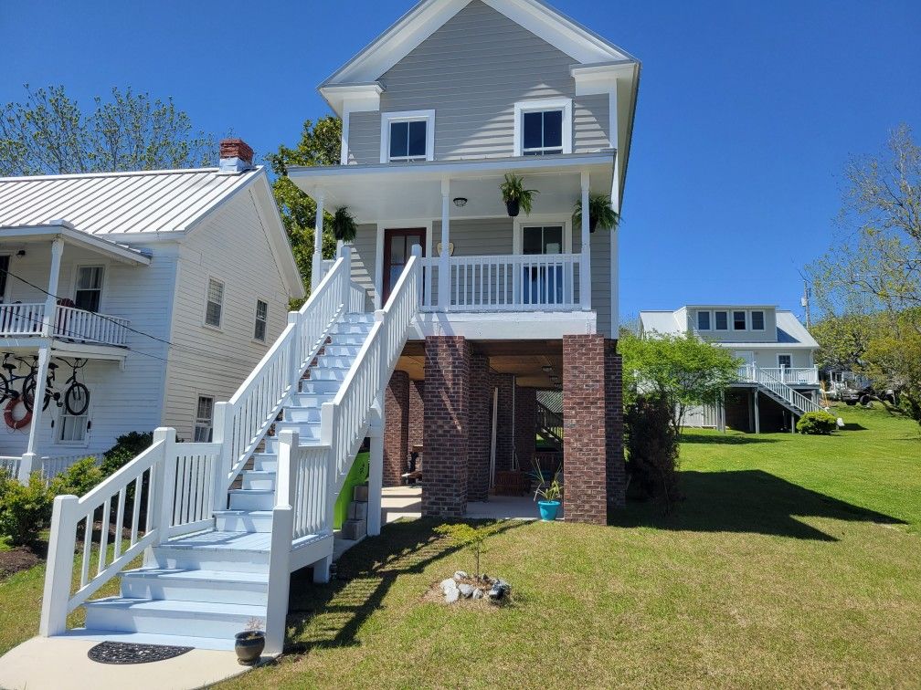 Salty cottage is a fully remolded 19th century historic home that was moved from downtown Swansboro to the banks of the White Oak river.