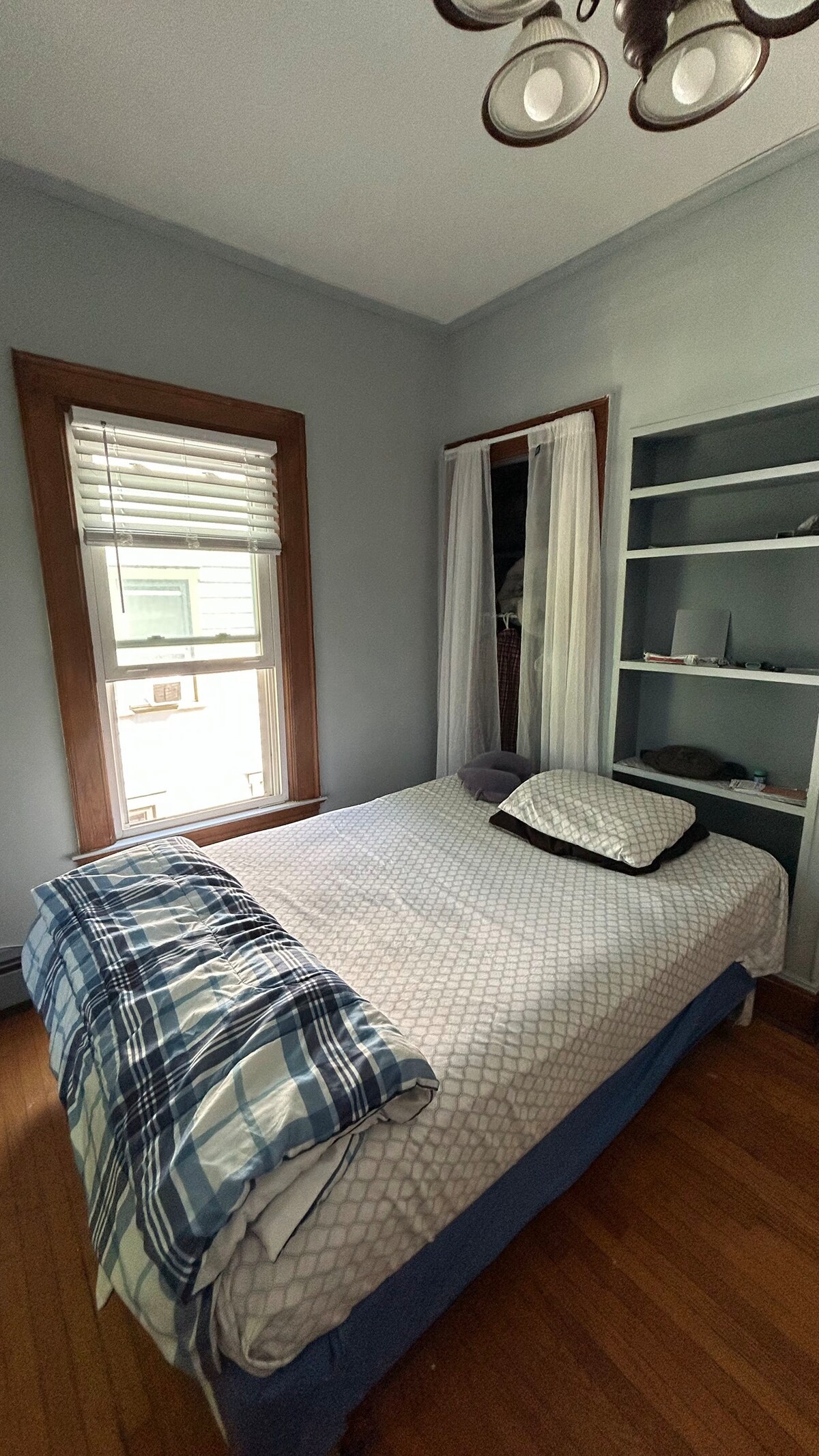 The Mabel Room is a mid-sized, private bedroom within a spacious, first-floor apartment. The apartment is in an Italianate 1910 duplex built by the Ebeling family on historic Prospect Hill. The private room has a comfortable twin bed with two storage drawers underneath, a closet, nightstand, window, and 6-drawer dresser.