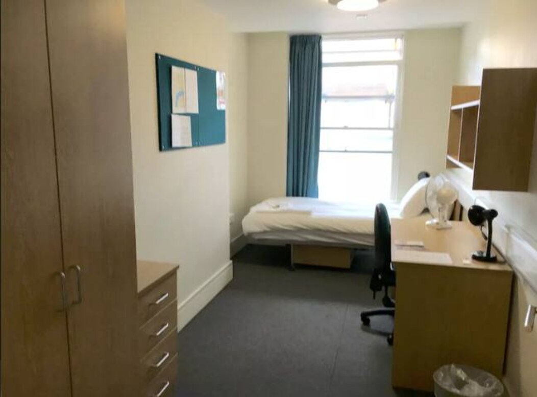A rear facing single bedroom room with shared shower room on the fourth floor of Duchy House.