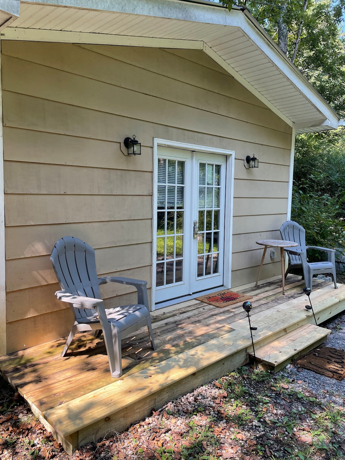 The wooden walking bridge is available for use only by my cabins. I am currently redoing the hand railings on the wooden walking bridge so it may be being worked on while you are at the cabin. This will have no effect on you as it isn't directly beside the cabin. It is 100% accessible now but we are finishing up redoing the rails at the moment so we may be working while you stay. Again, this bridge is down and away from your cabin so it will not effect your stay. Thank you!