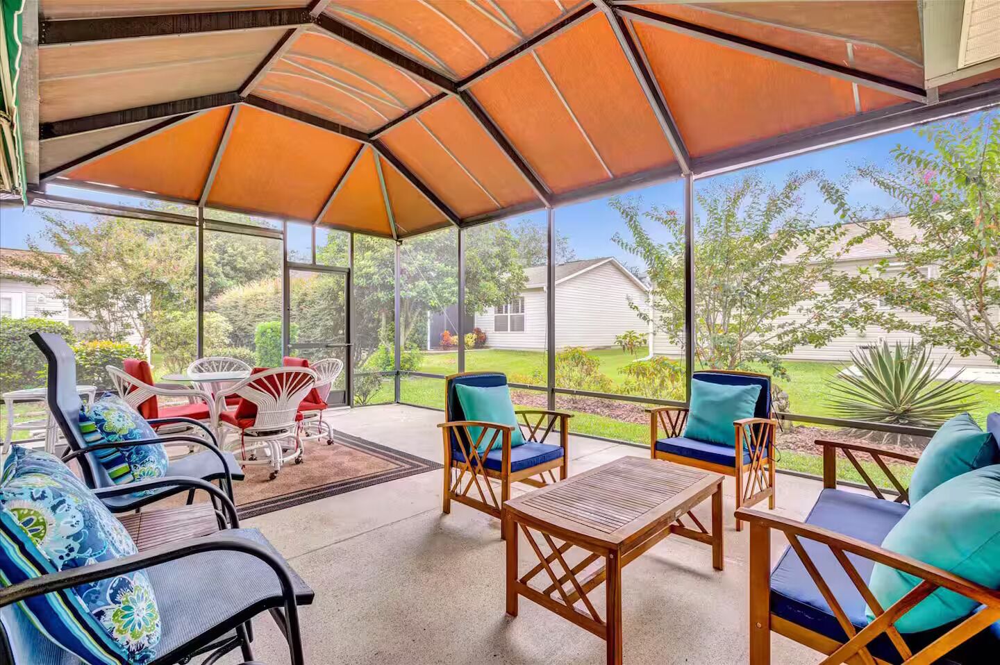 We have plenty of indoor and outdoor seating available to enjoy the view. You can enjoy all the incredible activities that The Villages has to offer. There is ample parking in this cul-de-sac, and spaces for golf carts also. They can be rented by the day, week, or month.