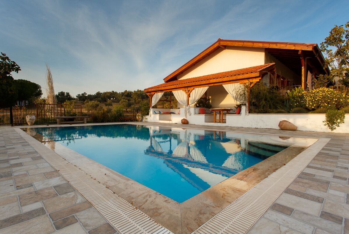 Ionia Guest House is a rural bed-and-breakfast here in Turkey’s Aegean region. Our four rooms are spacious with ensuite bathrooms and private verandas. There’s a shared swimming pool with a large terrace, and a cafe serving local food. The hotel is set in a fig orchard surrounded by olive groves — think of our place as a country oasis where you can rest and recharge.