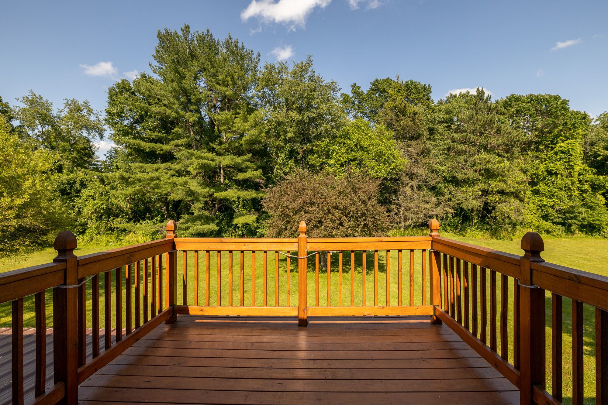 The property features over four acres of forest bordered by Stony Creek. In the center, there's an open meadow with a pond. We placed a beautiful, custom, cedar picnic table there, right next to a second fire pit. It's a wonderful place to watch nature and enjoy beautiful days.
