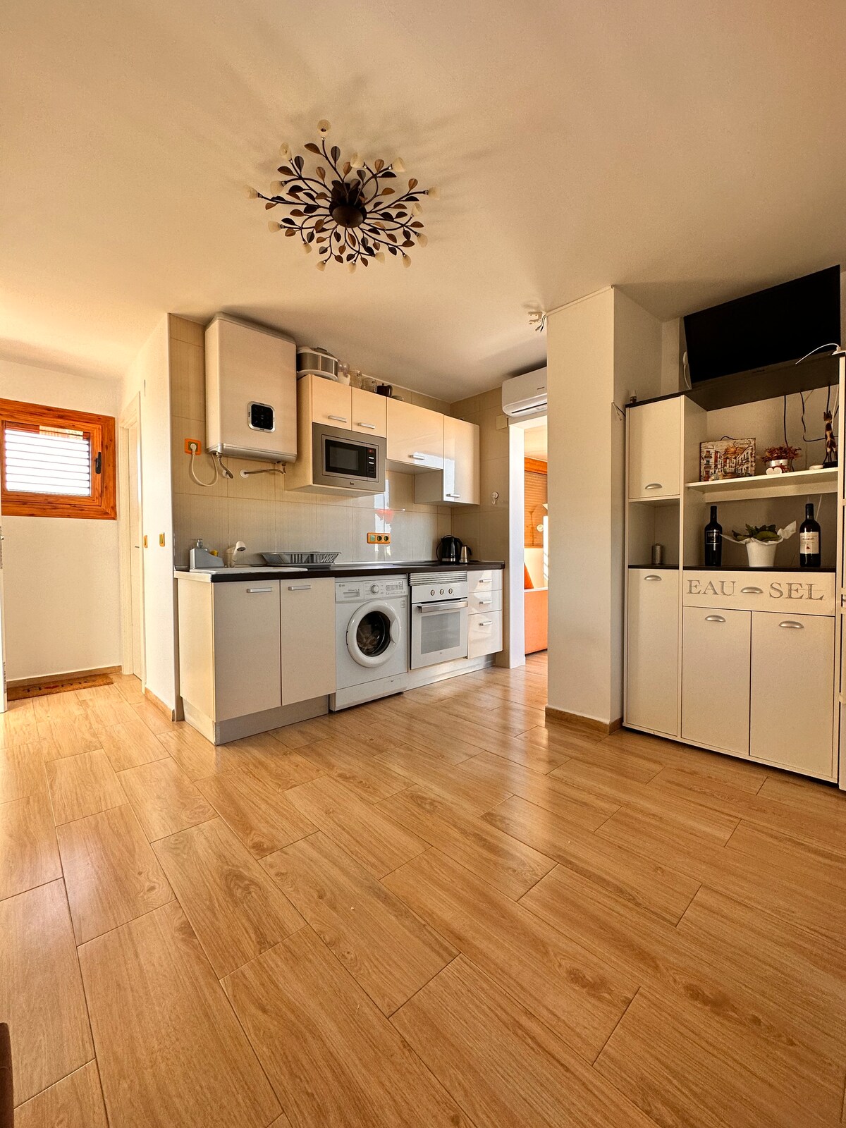 For rent studio spread out over 26 m2. It can sleep up to two people. The studio consists of a salon, kitchen, bathroom and a glazed terrace. It is equipped with furniture, appliances, dishes, bedding and towels. There is air conditioning. Spanish Tv is available. There are many tapas bars and restaurants, supermarkets and more local amenities all in walking distance. The blue flag beach of Del Cura beach is a 10 minute walk. Pets and smoking is not allowed in the property.