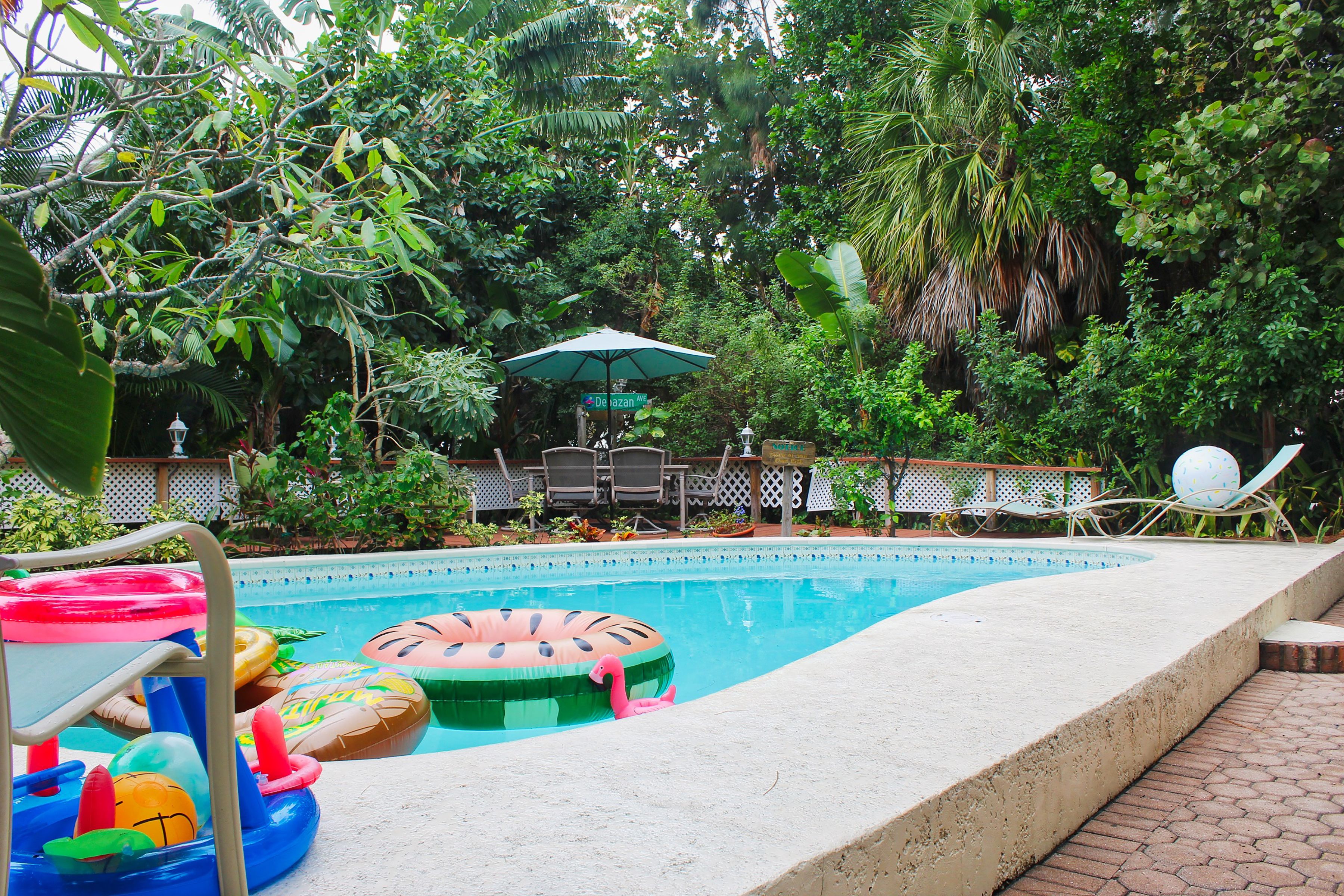 THIS ROOM IS ONLY FOR ONE PERSON. This is firm. The kitchen is not included but there are many amenities in the room for eating. Coffee maker, hot water pot, blender, mini-fridge, freezer, microwave, rice maker, crock pot, mini skillet and air fryer. Cups, dishes, flatware of plastic or glass. Wine/beer openers, wine/beer glasses. Plastic cups for pool area. There is a beautiful pond with many Florida water fowl. Back patio with outdoor furniture and hammock chair. Beach towels, chairs, umbrellas, coolers and pool floats to borrow - no snorkeling gear yet.