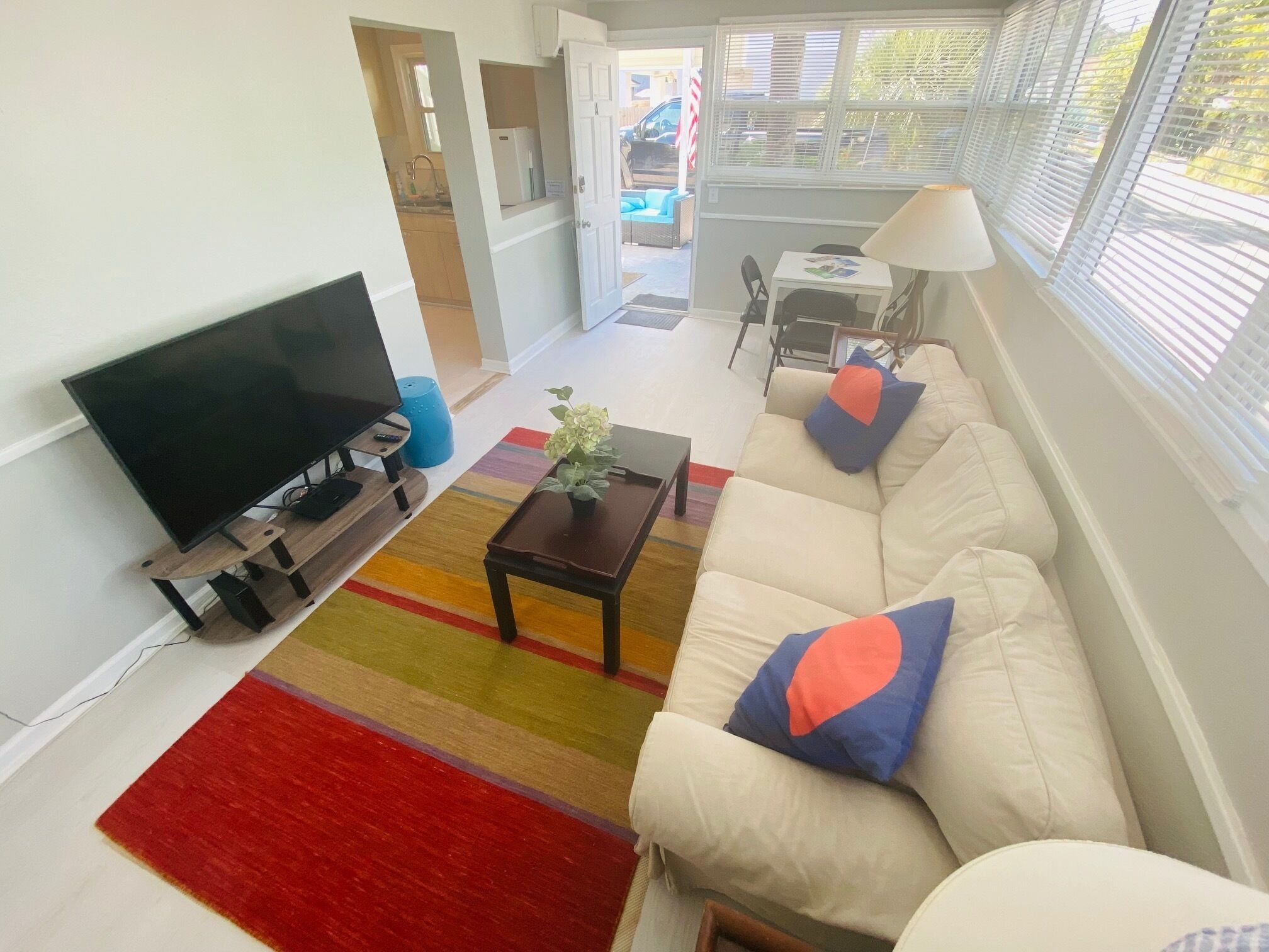 Discover tranquility in our fully furnished 2BR/1BA Cottage, nestled just steps away from the pristine beaches of Treasure Island, FL. Recently renovated, the "Beach Cottage" effortlessly blends modern comforts with the timeless charm of a Coastal Cottage. Enjoy the convenience of new stainless appliances and a washer/dryer for added convenience.