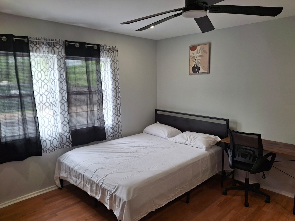 Welcome to your home away from home! This spacious and clean 4-bedroom apartment is perfect for students, professionals, or travelers looking for comfort and convenience. Each bedroom is private, while the 2 bathrooms and 1 fully equipped kitchen are shared among guests.