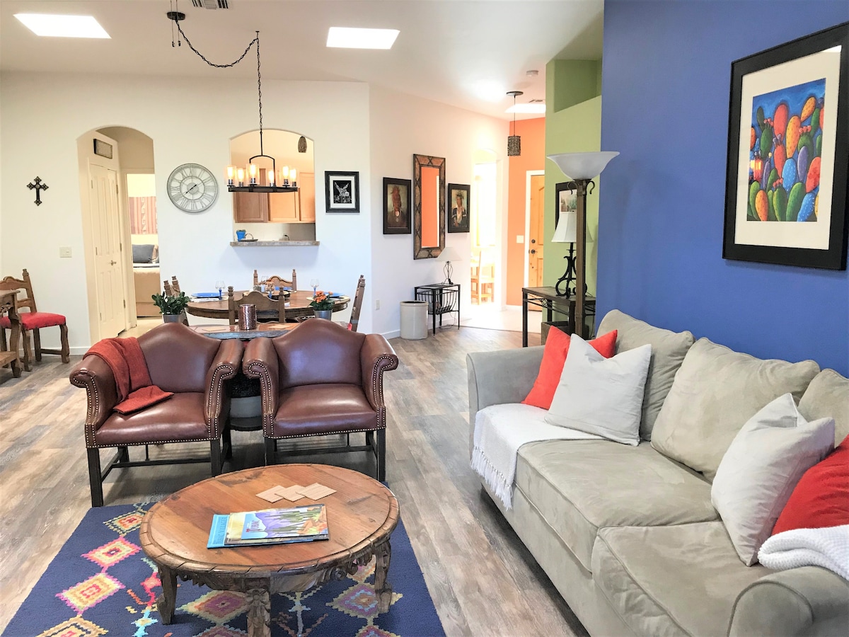 Relax with the whole family at this peaceful retreat. There is plenty of indoor and outdoor space to make this place uniquely yours during your stay. We provide thoughtful amenities to make you feel at ease with a fully stocked kitchen, bedroom, bathroom and laundry room. There’s no place closer to a home away from home than here! We are located within walking distance of Tubac Golf resort, Tubac Community Center, De Anza trail, Ron Morris Park and all the shops, galleries, and restaurants.