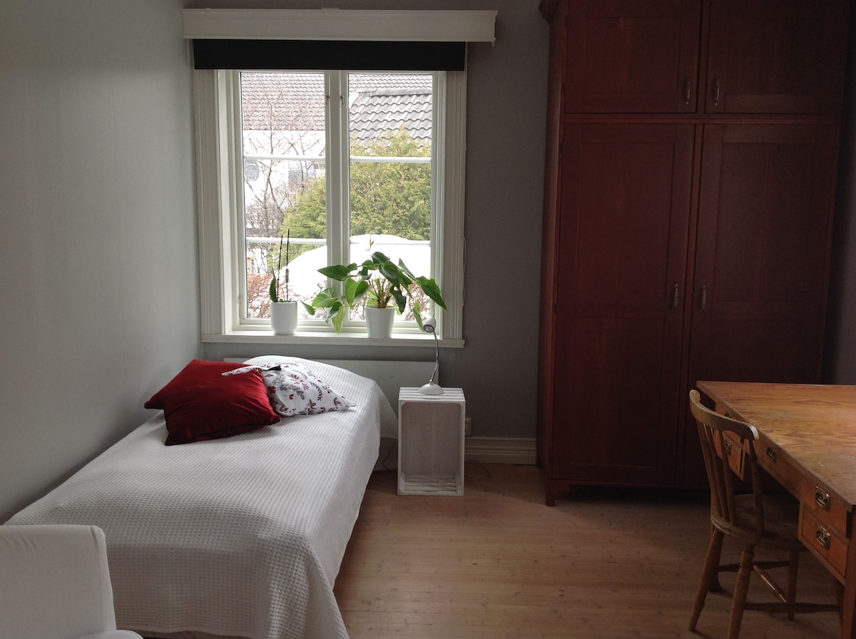 Our house is in a quiet neighbourhood at the outskirts of town, yet with excellent access to public transportation. The city centre is only 15 min away by bus, car or bike.