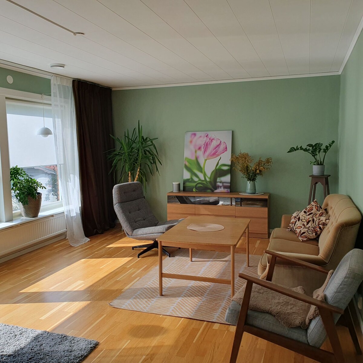 An open and relaxed apartment with 3 min walking distance to Umeå town square. The busline is just around the corner. Wifi, Netflix, Aircondition. Possible to play Vinyl records.