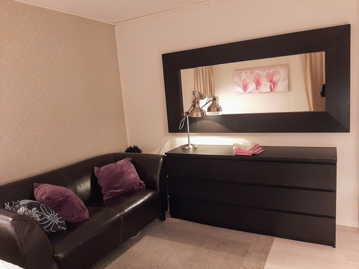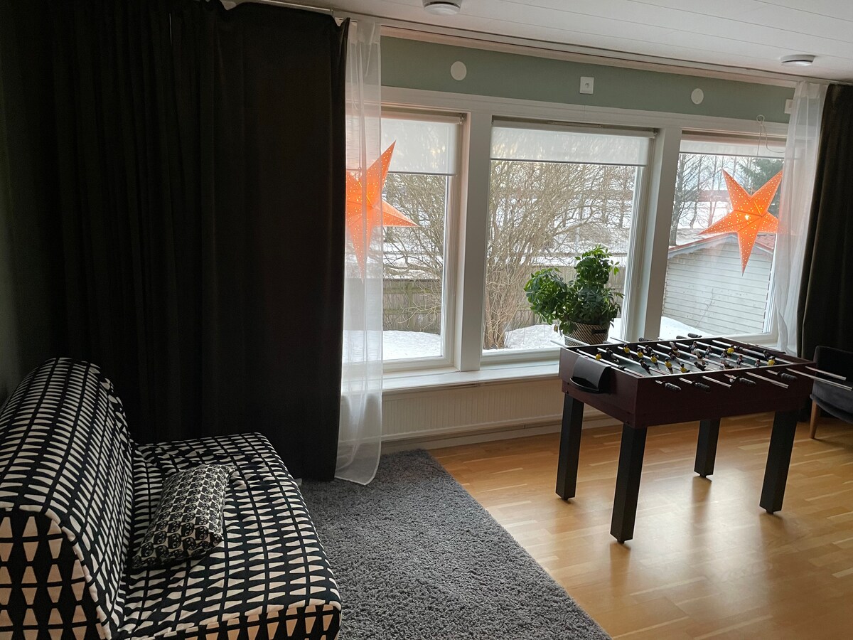 This stylish home is perfect. Beautiful larger room with large balcony with morning sun. Quiet and safe area. The room is located in a large funkis house. Close to nature. Iksu spa. Shops and bike paths to everything in Umeå. Buses go every 10 minutes locally, takes 10 minutes to the center. Non-smoking accommodation.