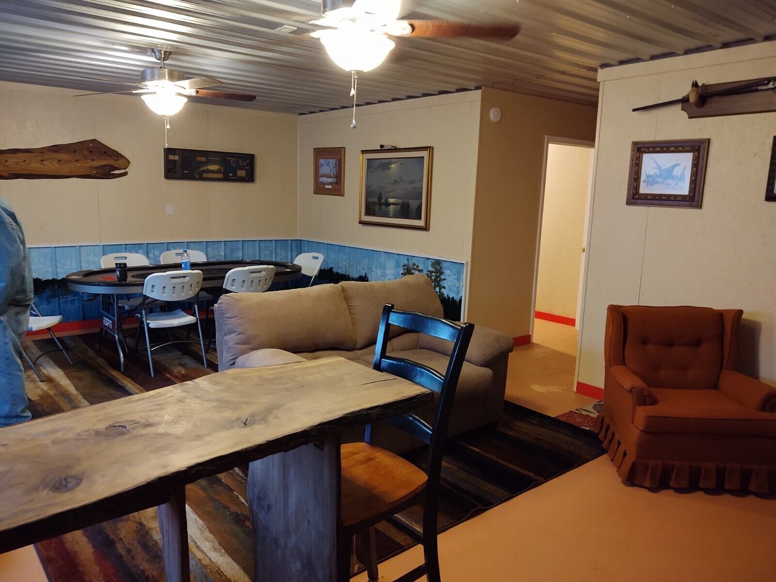 Guest house with spacious shop located on a peaceful street in between Discovery Park and Reelfoot Lake. The guest house features 5 twin beds and a sectional couch for maximum comfort, a 65" TV, a full kitchen and a full bathroom. The climate controlled shop is right across the way and is the perfect hang-out destination for after hunting or family get togethers; featuring a pool table, darts, corn hole, ping pong, a jukebox, an 86" TV, a 20ft bar, and access to indoor parking year round.
