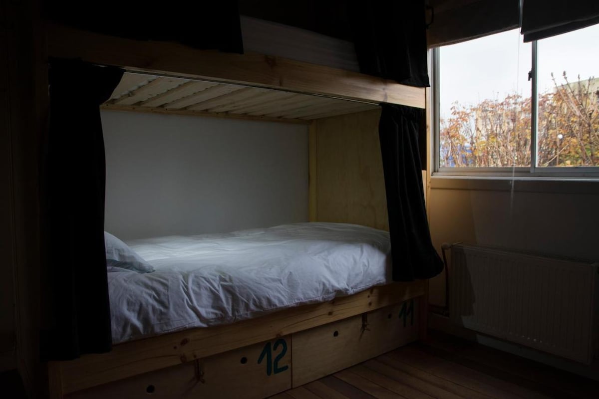 The kitchen is equipped with an oven, a stovetop, and a refrigerator, as well as an electric kettle, a lobster pot, and a microwave. And there is a laundromat nearby so you can pack a bit lighter. Other amenities include bed sheets, a desk, heating, and a dining table.