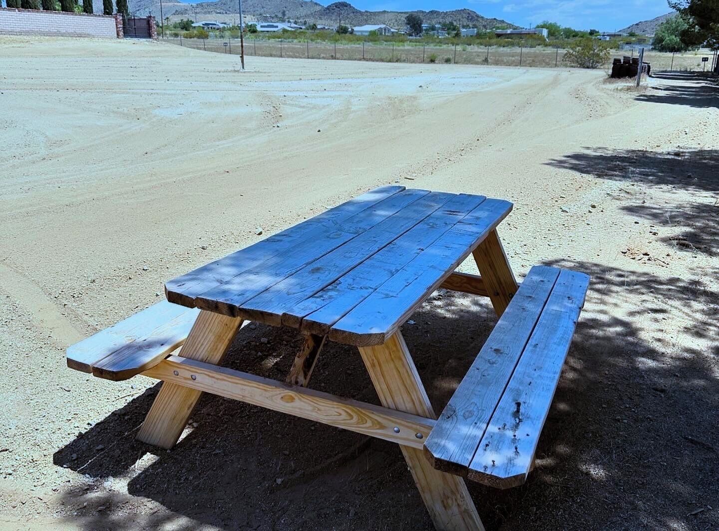 Sleep well and stay cool with a/c and cieling fan or warm with efireplace and lock the door with your key. At night enjoy the star views. During the day enjoy your mountain and desert views or turn on 40 inch tv and stream. You can also get ready for work or fun with closet mirror. Spacious room with full size bed, lamps, and desk. Lots extra storage space.