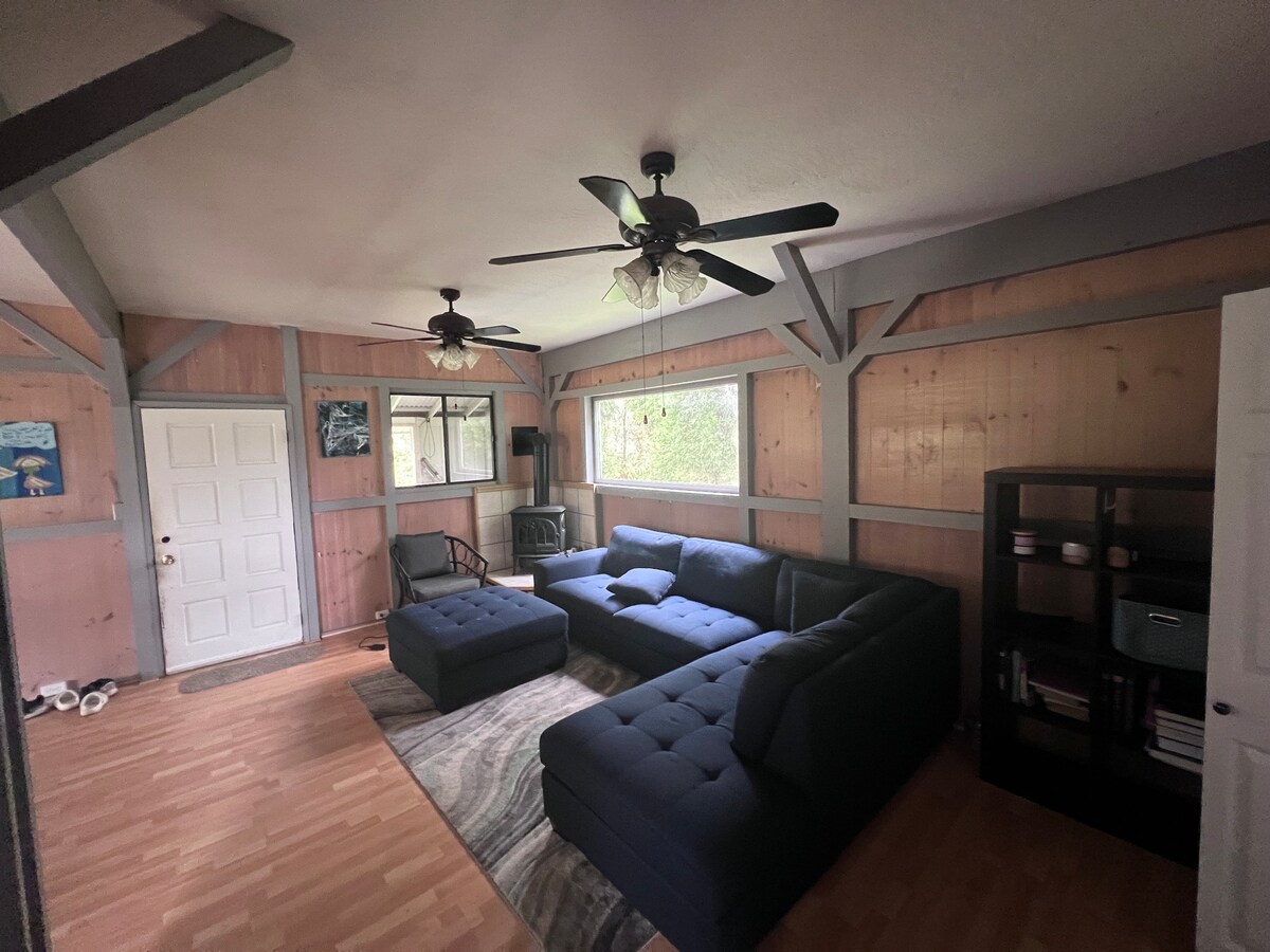Your private bedroom, shared bathroom, shared living room, shared kitchen, shared dining room, shared campfire pit, shared lanai (outdoor diving area & patio).