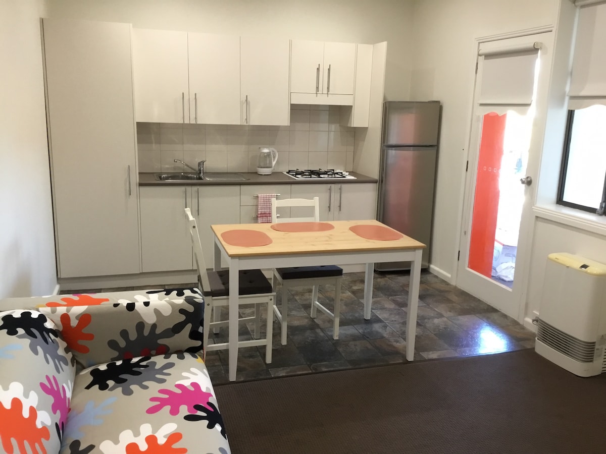 Your own private bungalow behind the house, with small kitchenette (with fridge/freezer/Nespresso coffee/toaster/kettle/microwave), bathroom and heating/air conditioning, free Wifi and access to the sunny deck and huge garden/veggie garden. 10 minutes walk from town center, across the road from Albert Park playground and Football club (restaurant), few minutes drive to beach/Lake Pertobe precinct. Perfect for a quick stop over in Warrnambool!