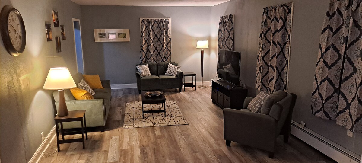 Make some memories at this unique and family-friendly place. You'll find off road parking with a huge yard. This apartment will serve all your traveling needs as your home-away-from home. The bedroom offers a full closet to hang your clothes, a writing desk and queen size bed. The living area has a full-size sofa bed and plenty of space to relax.The kitchen has a full size oven,refrigerator and all cooking essentials. Laundry facilities are in a common hallway. Rib mountain is about 1 hr drive.