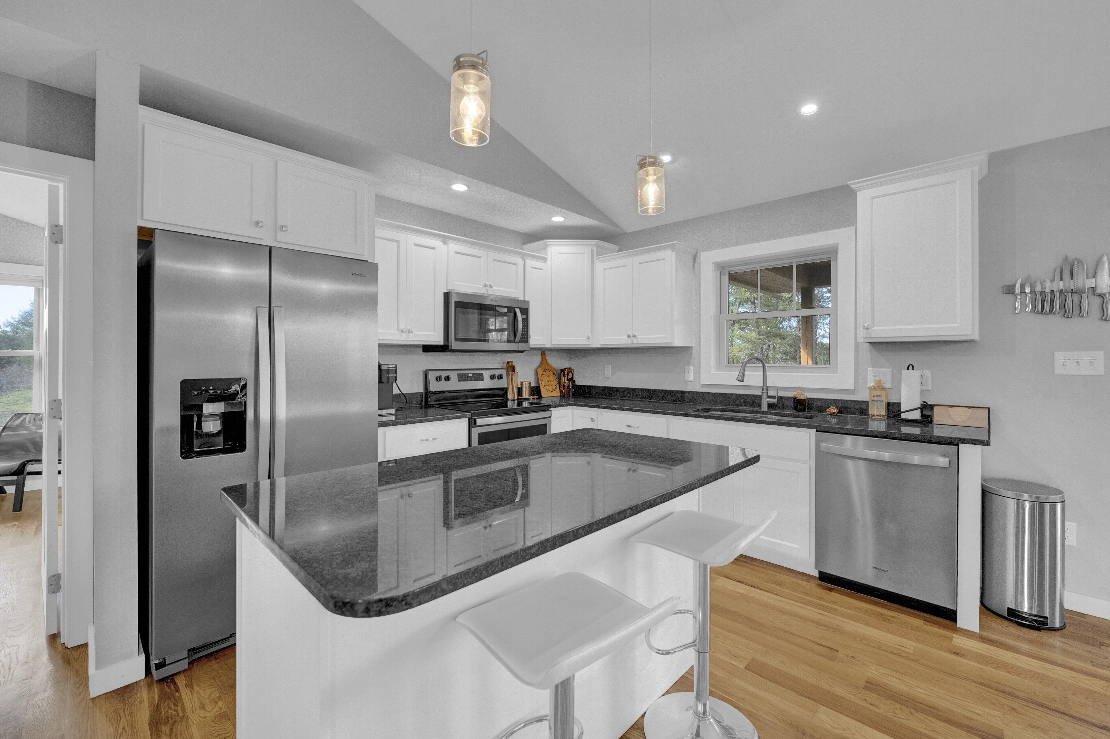 - Amenities include a fully equipped kitchen with Keurig and French Press, free Wi-Fi, 2 TVs with DirecTV, ESPN and HBO MAX, in-unit laundry machines, gas fireplace, handicap-friendly amenities, on-site parking with room for 2 vehicles, on-site Level 2 EV charger, community fire pit, gas grill, covered wraparound porch complete with rockers, and more!