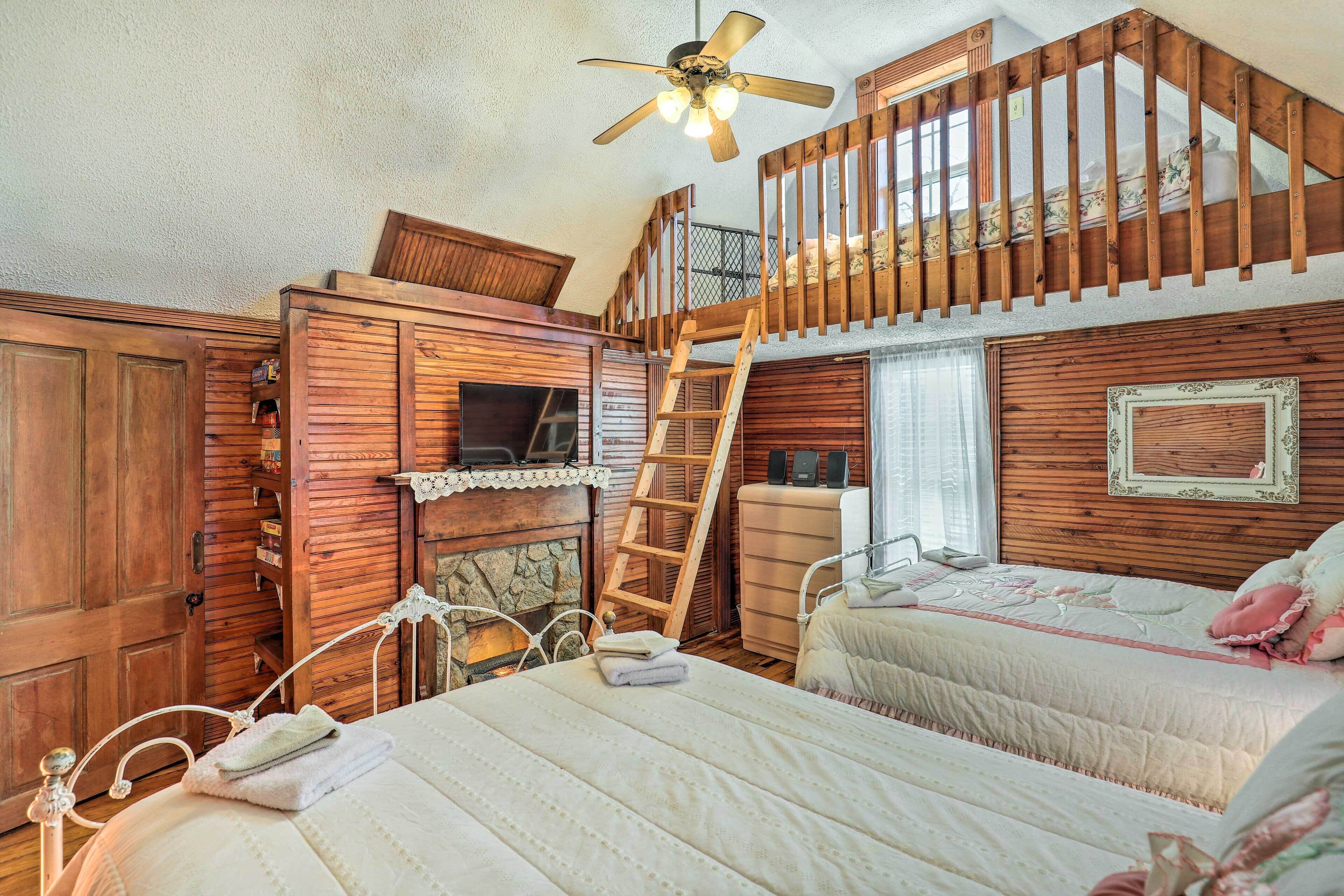 This property is accessible for all, with a handicap-friendly bathroom and pullout bed on the main floor (with 3-inch gel memory foam mattress topper for added comfort). Additional guests can make their way upstairs to the open loft, featuring a flat-screen TV and comfortable queen beds.