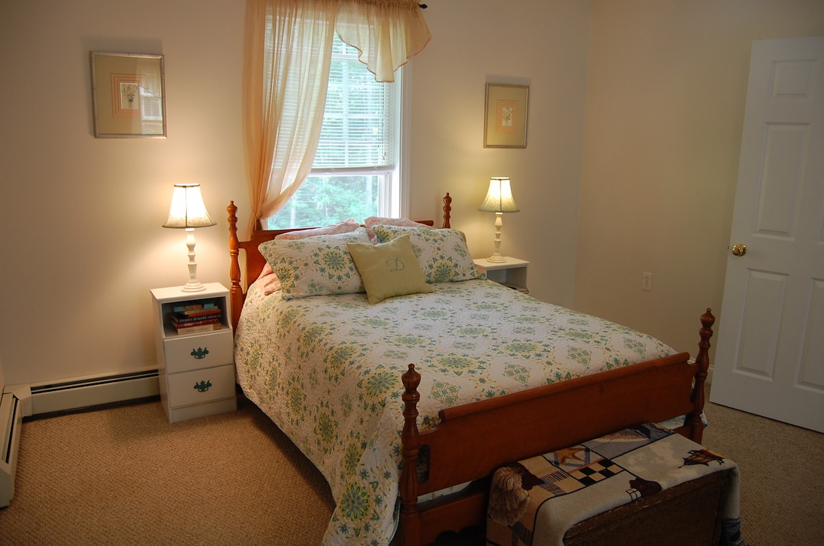 Very cozy New England style room(s). Private rooms & bathroom on separate side of house. Access through our front door (we never use front door ourselves). Queen bed with feather bed topping! TV with over 100 channels. Cozy reading chairs and light. Swimming pool. Second bedroom available for additional people. (Only available for a second couple traveling with you, or couple with grown children.) Will not be rented out separately.