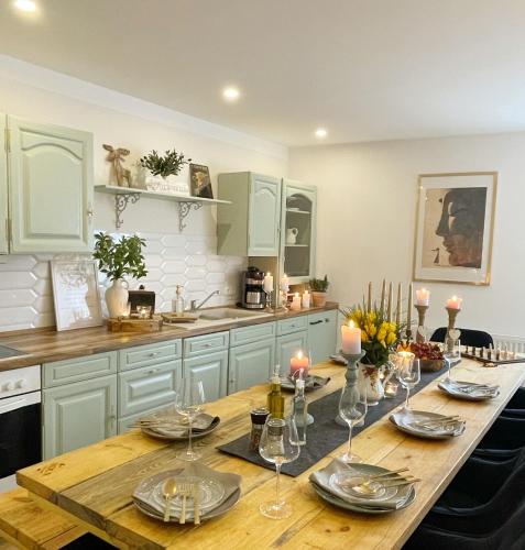 of the property. It is furnished with historic furniture, modern technical equipment combined with shabby chic. The result is an exciting ambience with wooden floors and tiles.