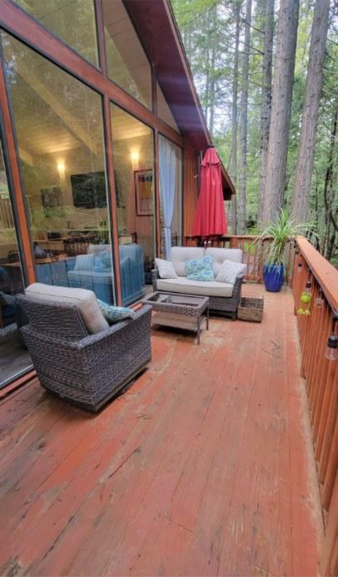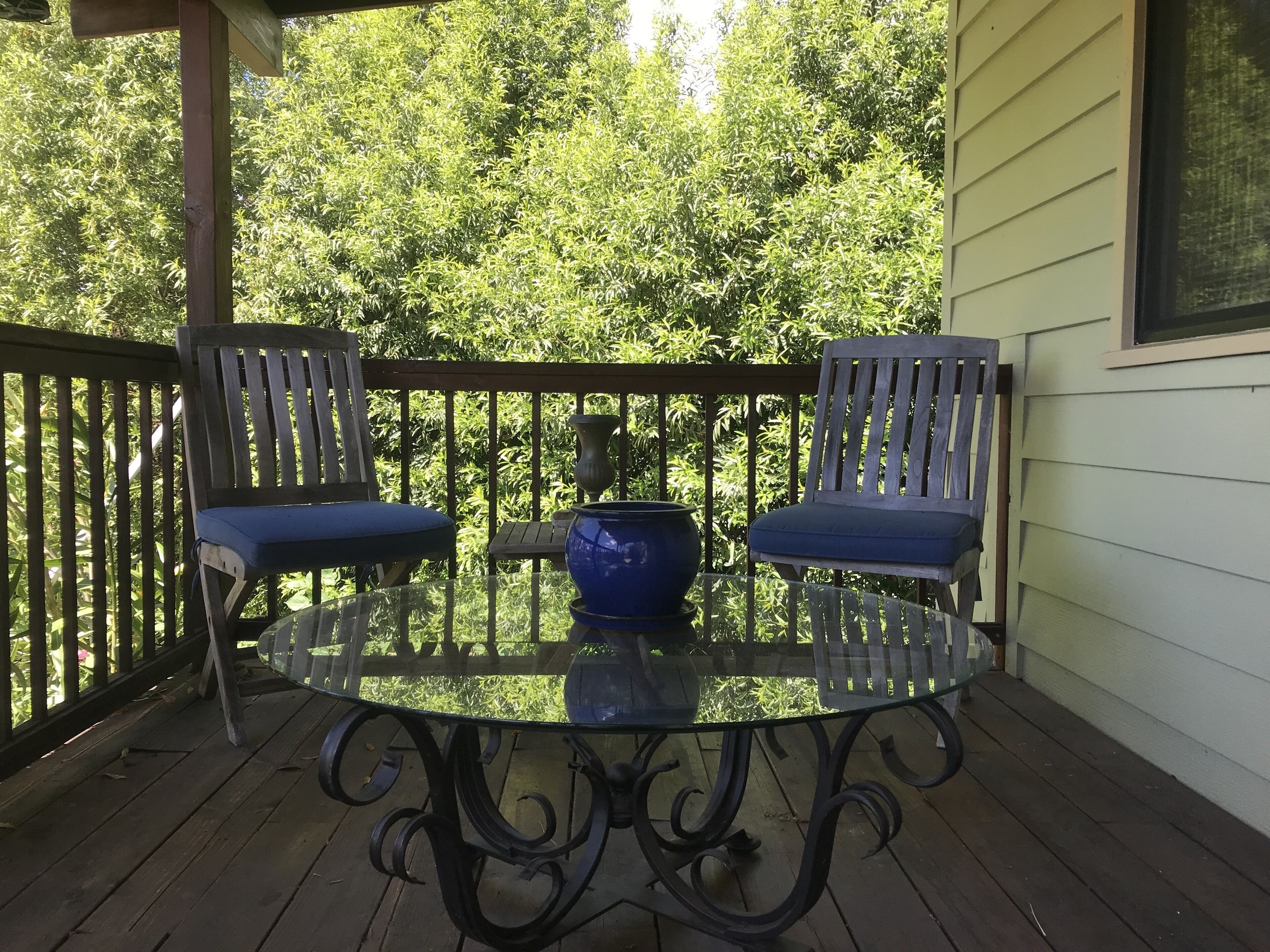 West Deck: The famous and amazing west deck in so many of the photos is available to you at any time, with easy access from your space through your half of the huge wrap-around glass porch. Find a table, take your food, a book, your flute or guitar - and sit contentedly out there, appreciating the spectacular view, and the serenity.