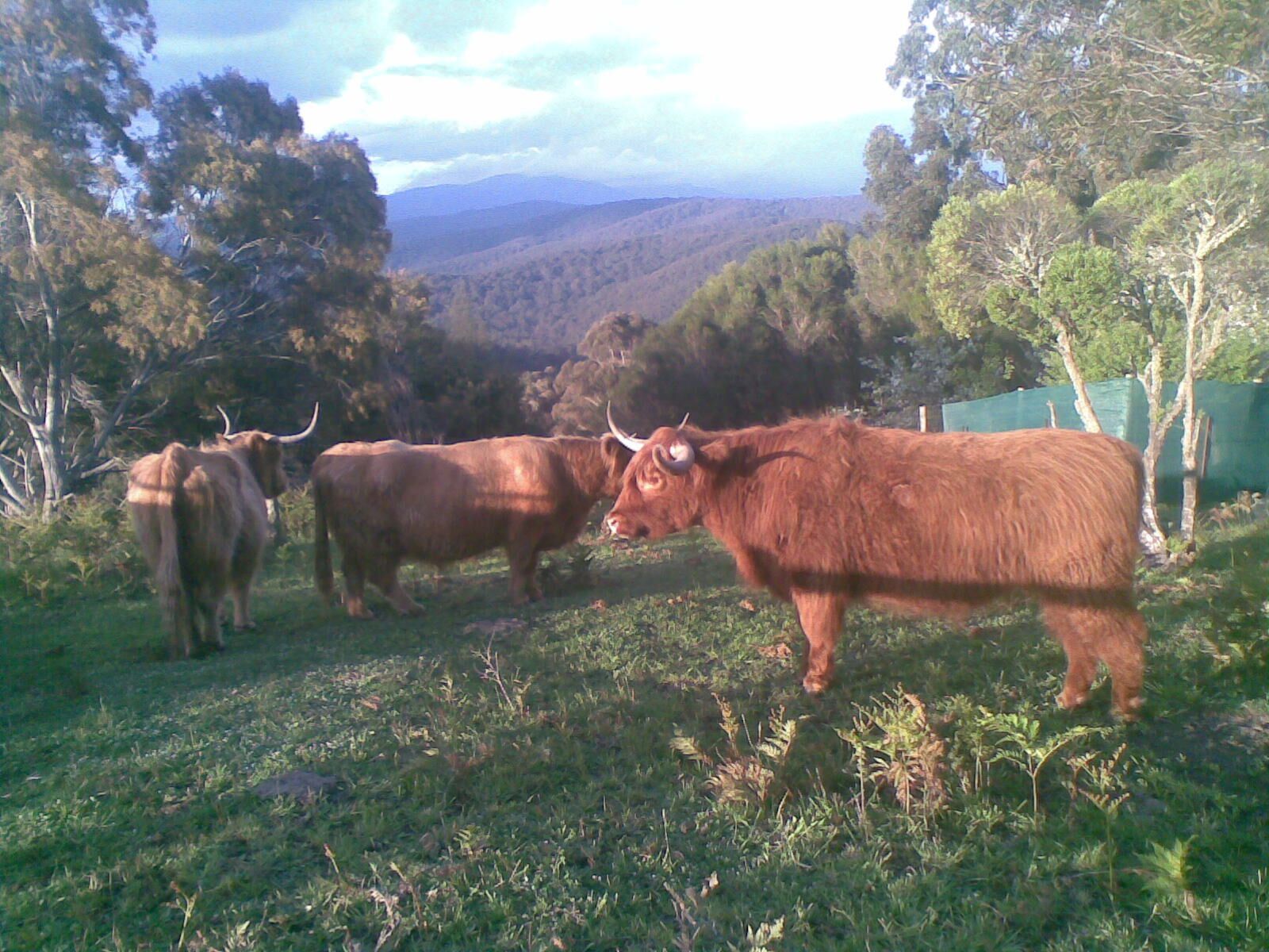 Architect designed cabins adjoining the owner's residence, featuring 40km view of the Baw Baw Range. There are 2 self-contained cabins, book together or separately. On our forest edge farm, you'll find a charming mix of Scottish Highland cows, Suffolk sheep, and Australorp chickens.