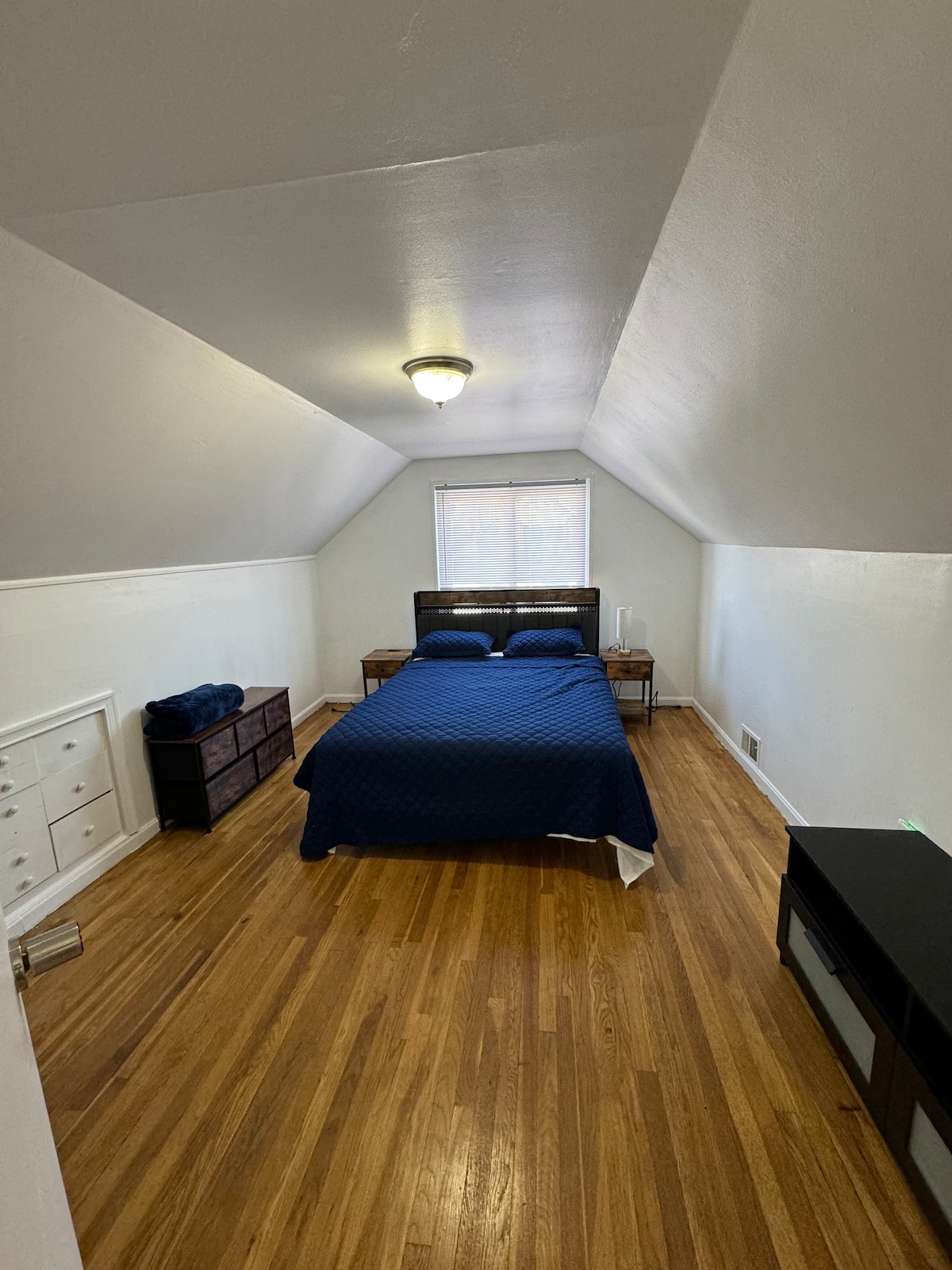 The room is located on the second floor, and you would have to walk up the stairs to access it. The house will be shared with 3 other guests and/or roommates. A cleaning person will come by every 2 weeks to clean up the common areas. No pets are allowed. Also, there’s no laundry available on the premises. However there are 2 laundromats within a mile of the house.