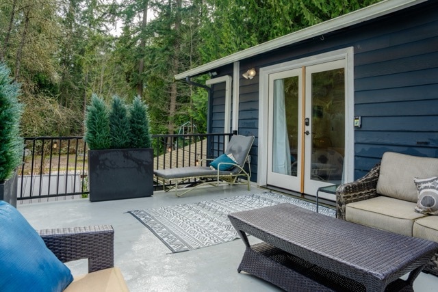 Our space is called “Bridge to Quiet Serenity” because there is a 60-foot bridge that leads you to a patio and landscaped backyard where you can truly experience “quiet serenity.” After a long day of exploring Woodinville and greater Seattle/Bellevue attractions, you can sit out on the patio and enjoy an intimate time to wind down and relax at the table and fire pit.
