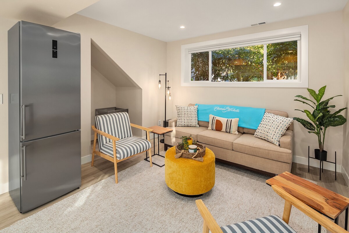 The home is stocked with coffee, full kitchen, BBQ, TV, high speed Internet, Air Conditioning (a must in the summer!) Entertain outside on the oversized deck, enjoy the fire pit area, relax in the sun on the sun deck and bring your dog, he will love going for a walk on the Burke Gillman trail.