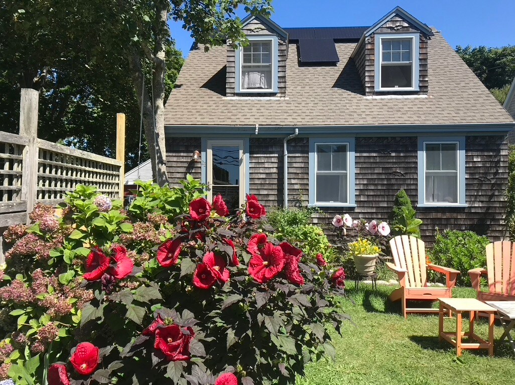 Stay in our lovely solar powered air-conditioned home, which is steps away from the Shining Sea Bike Path and the beach. This is a perfect Falmouth Road Race rental as you can watch the runners from the porch. Woods Hole Village is about a mile away on the bike path.
