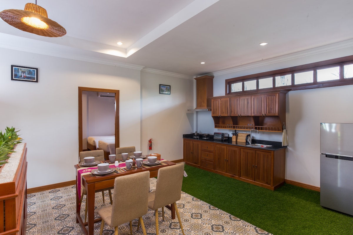Featuring free shuttle service, BB Angkor Green Resort provides accommodation with a year-round outdoor pool, a fitness centre and a water slide. At the resort, all rooms have a private balcony with garden view and there is a living room, dining area and kitchen.