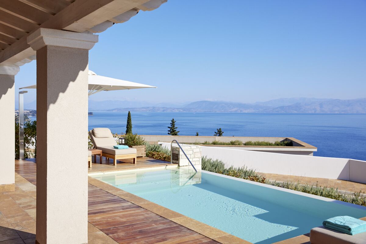 Live the life of luxury with a stay in the Angsana Sea View four bedroom, four bathroom pool villa. This seriously impressive detached villa can comfortably sleep up to nine guests, and is ideal for a family and friends’ holiday or celebration. Located in the grounds of the exclusive Angsana Spa and Beach Resort, the villa benefits from the privacy of your own modern Corfu home with private pool, and the on-site facilities and services of a five star hotel.