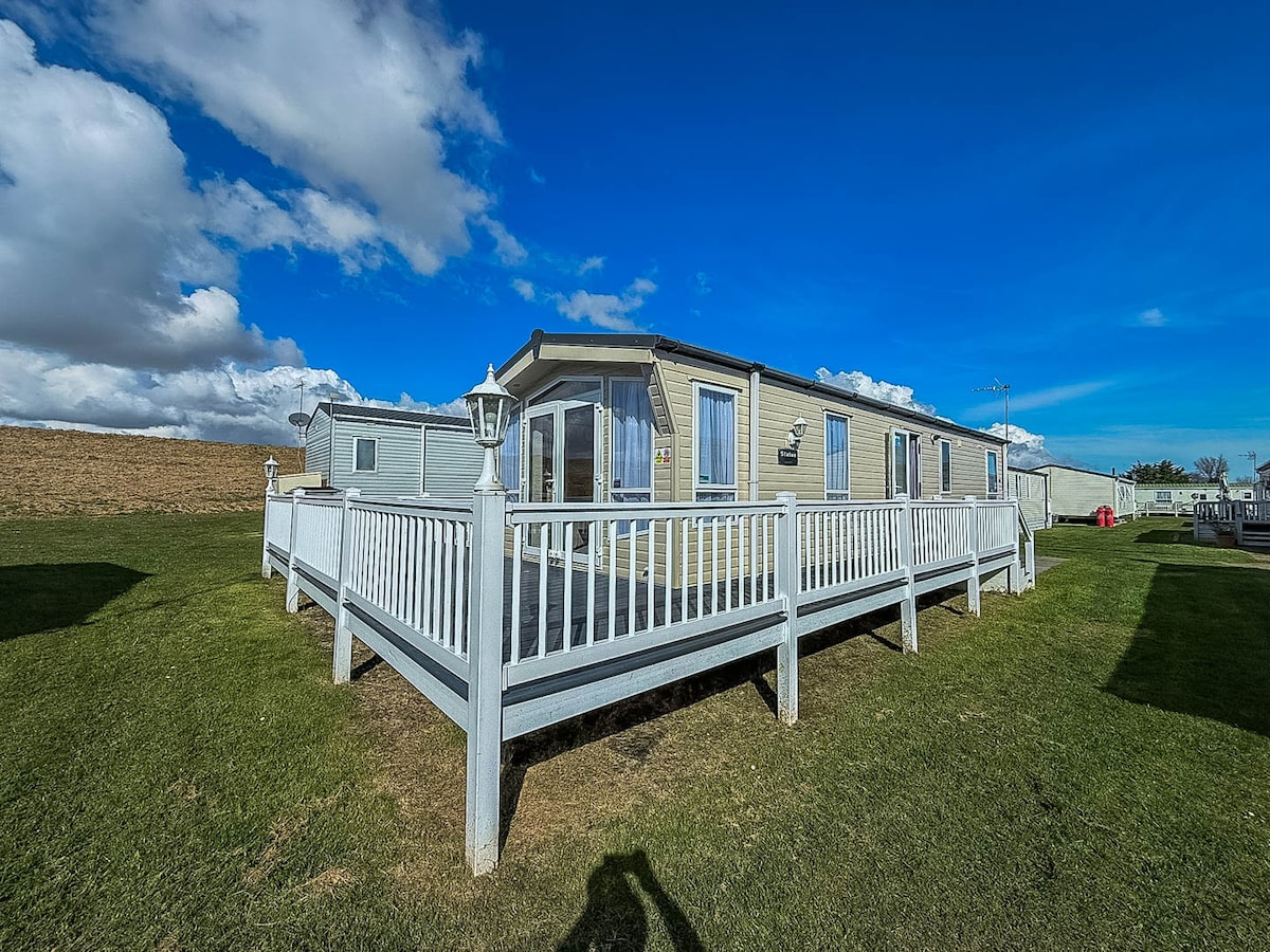 3 bed caravan, sleeps 8. With wrap-around decking, double glazing and central heating. Diamond rated.