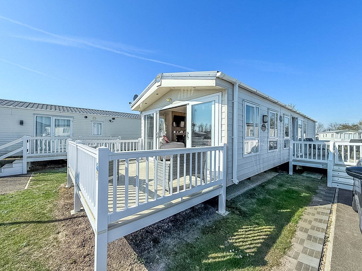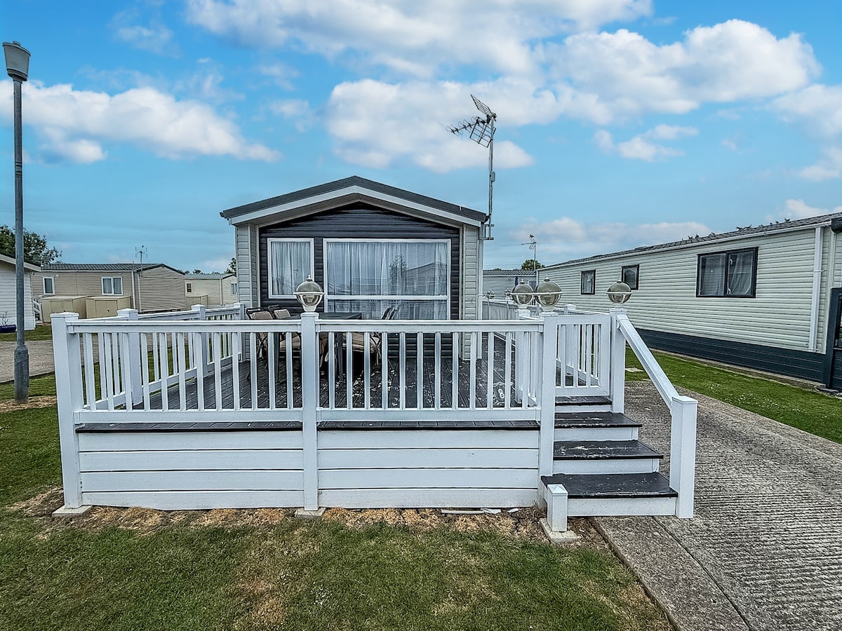 Beautiful caravan with wrap-around decking and a modern interior. On a fantastic family-friendly holiday park, near to the beach in Walton-on-the-Naze.