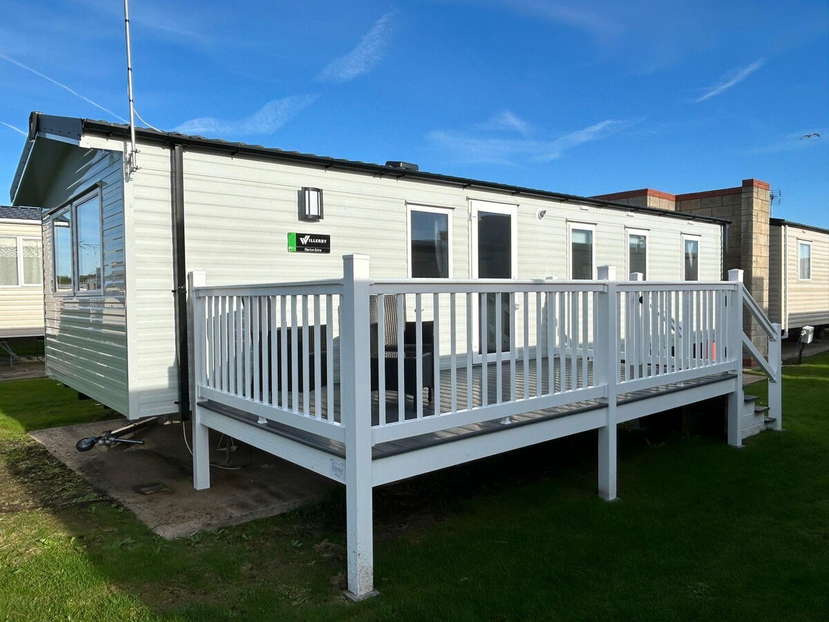 Beautiful caravan with a modern and homely interior. With decking to the side and front to enjoy the sunshine with outside furniture provided!
