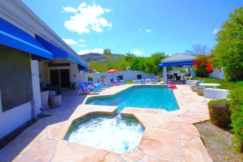 Featuring mountain views, Resort-Style Mountain View, Saltwater Pool/Spa, Golf/Hike -Glendale/Phoenix Area provides accommodation with an outdoor swimming pool and a patio, around 38 km from Phoenix Convention Center. The air-conditioned accommodation is 38 km from Copper Square, and guests benefit from private parking available on site and free WiFi. This holiday home comes with 5 bedrooms, a kitchen with a fridge and an oven, a flat-screen TV, a seating area and 4 bathrooms equipped with a shower. Towels and bed linen are provided in the holiday home. A sun terrace is available for guests to use at the holiday home. Deer Valley Rock Art Center is 8.6 km from Resort-Style Mountain View, Saltwater Pool/Spa, Golf/Hike -Glendale/Phoenix Area, while Pioneer Living History Village is 20 km away. The nearest airport is Scottsdale Airport, 34 km from the accommodation.