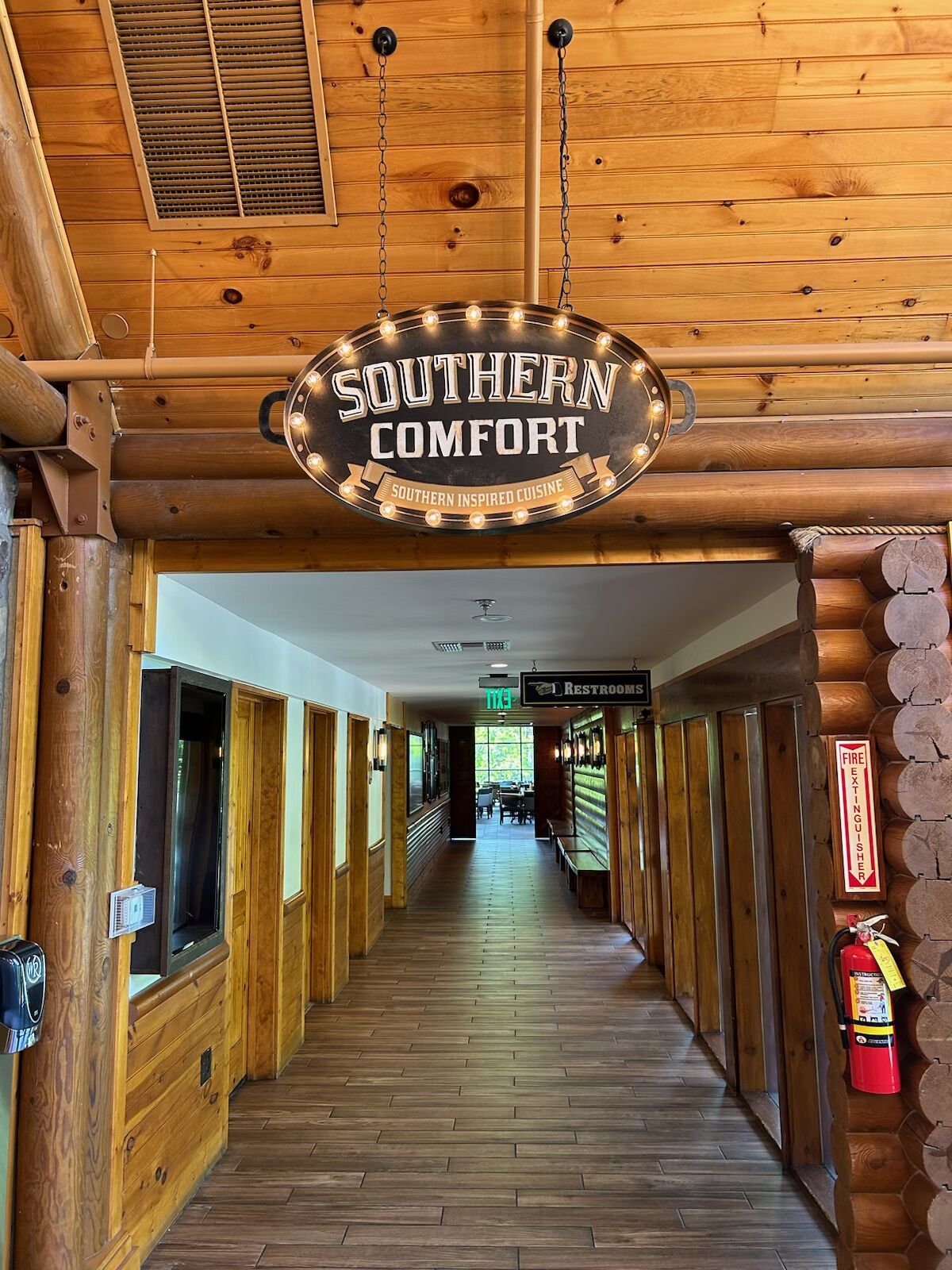The main floor offerings include a fully stocked kitchen, allowing for everything you need for a big southern breakfast or preparing dinner for the whole gang.
