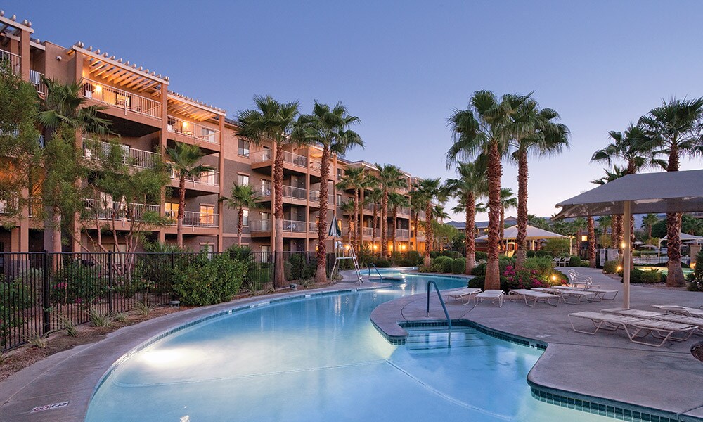 This lavish oasis is overflowing with amenities from two expansive pools, four hot tubs, a lazy river, two kiddy pools, two playgrounds, an arcade room, and a Starbucks on site. Weather your ideal desert getaway is cooling down pool side or relaxing in the peace and quiet on your own private balcony, this is your premier destination. Each unit overlooks the resorts amenities with the surrounding mountains as the perfect backdrop.
